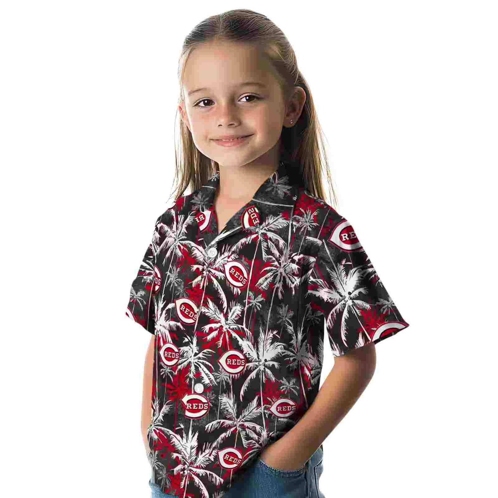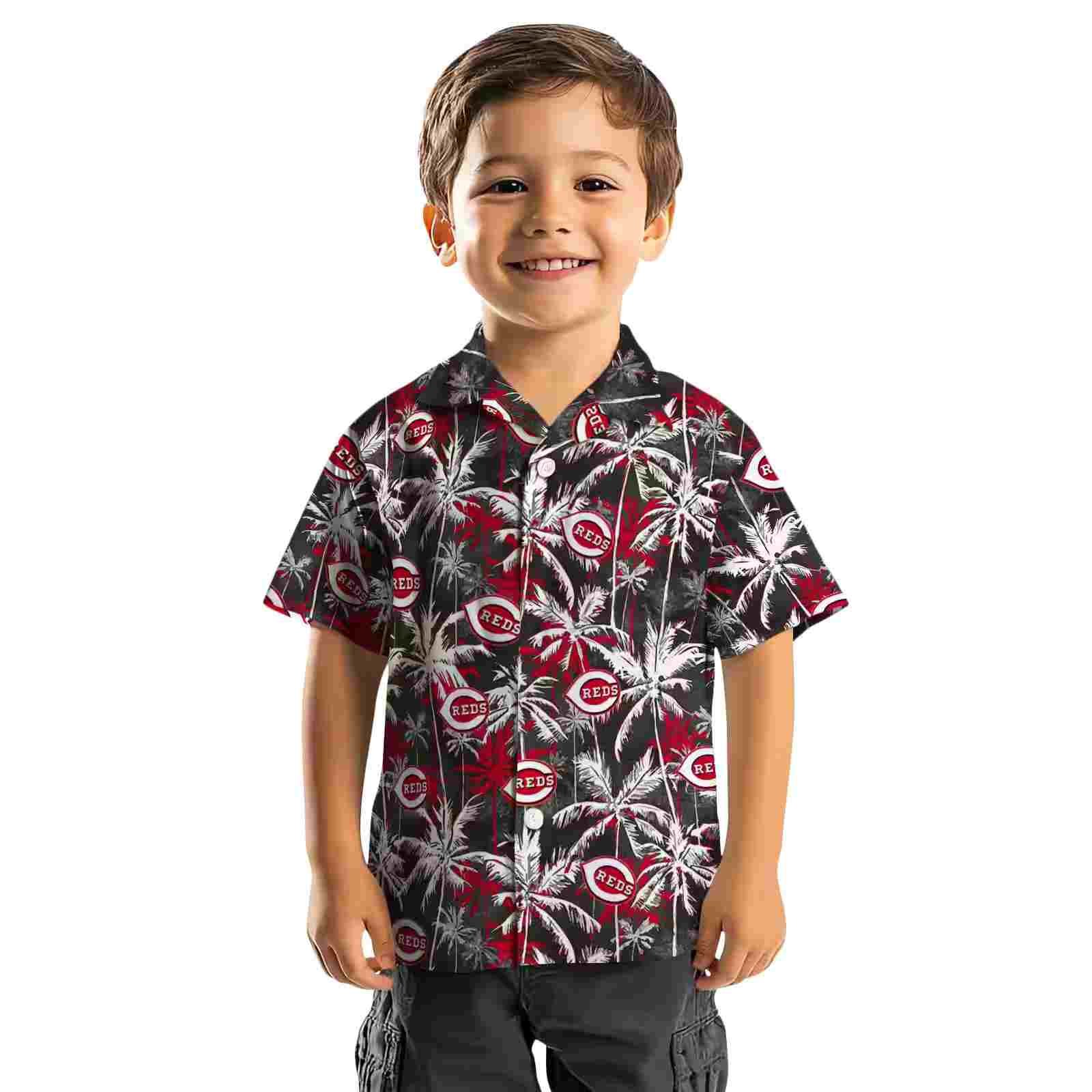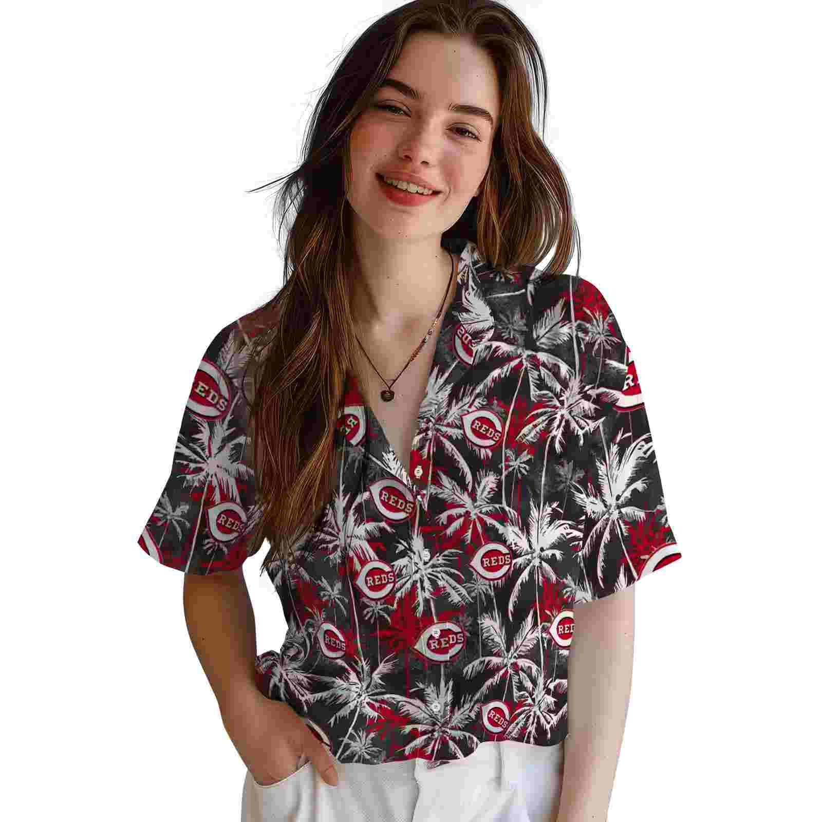 Cincinnati Reds Palm Pattern Red Black Hawaiian Shirt
