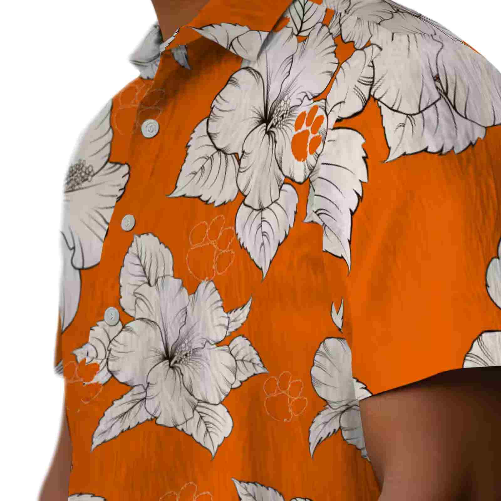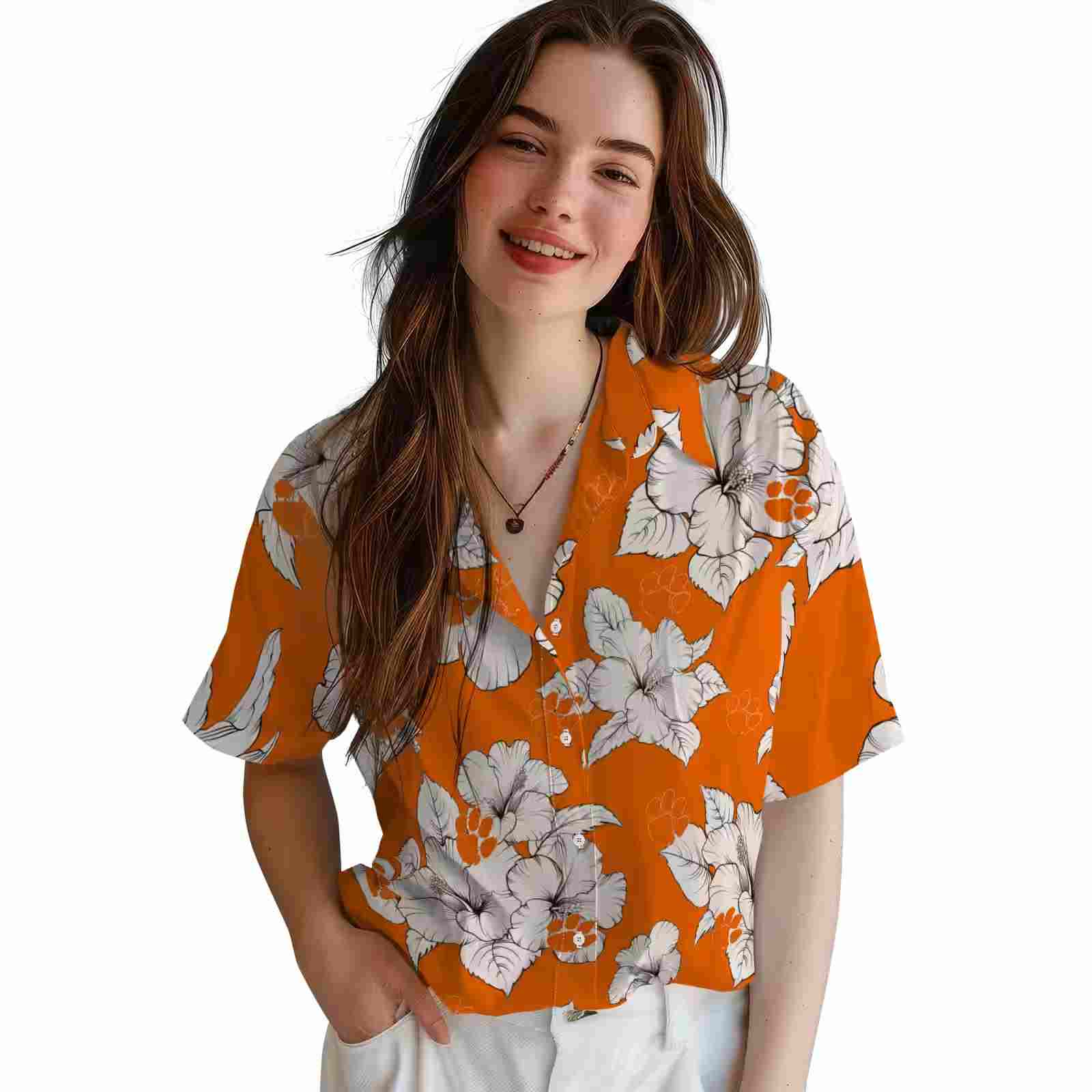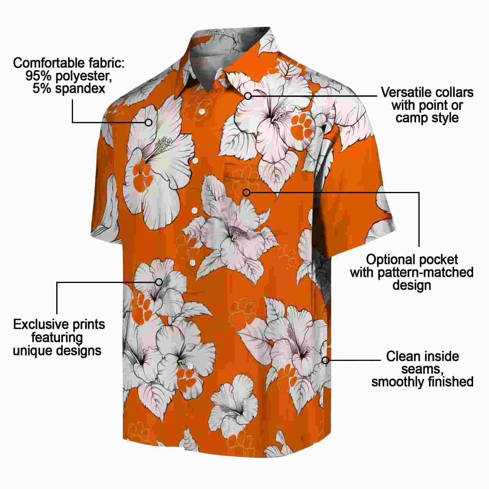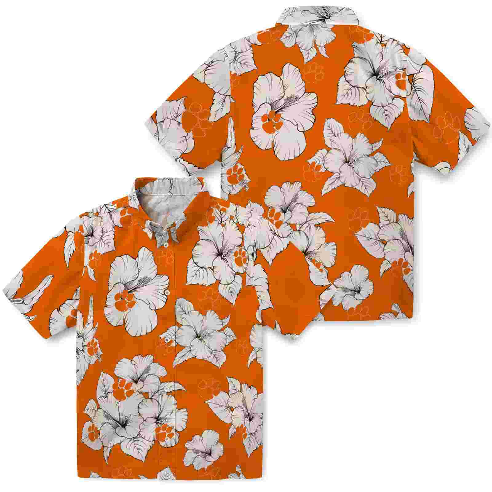 Clemson Tigers Hibiscus Blooms Orange White Hawaiian Shirt