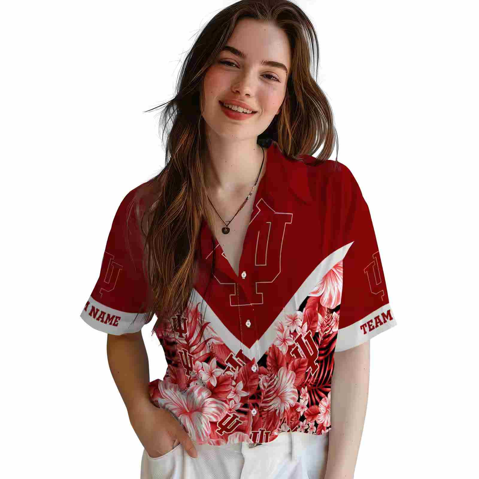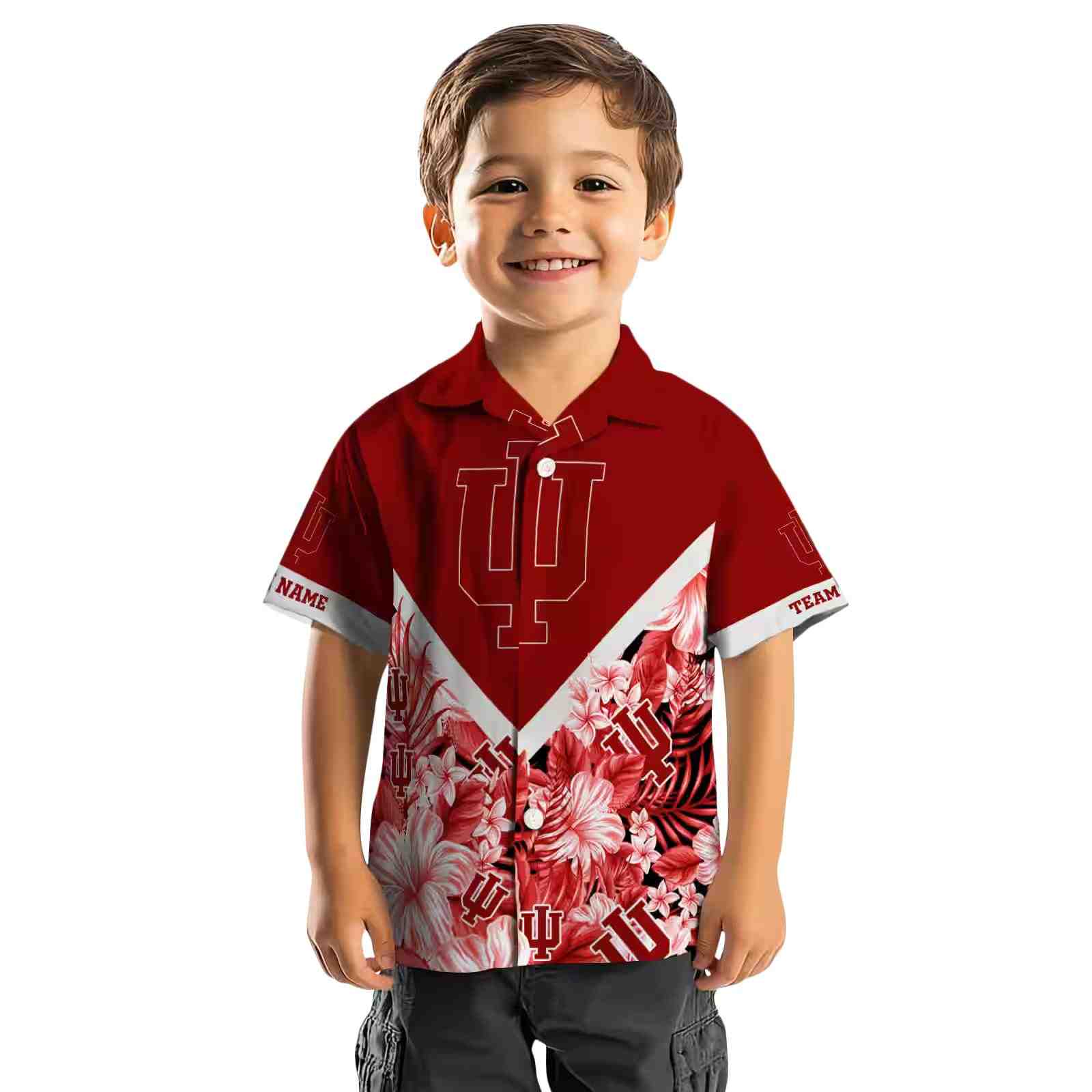 Custom Indiana Hoosiers Floral Chevron Red Hawaiian Shirt