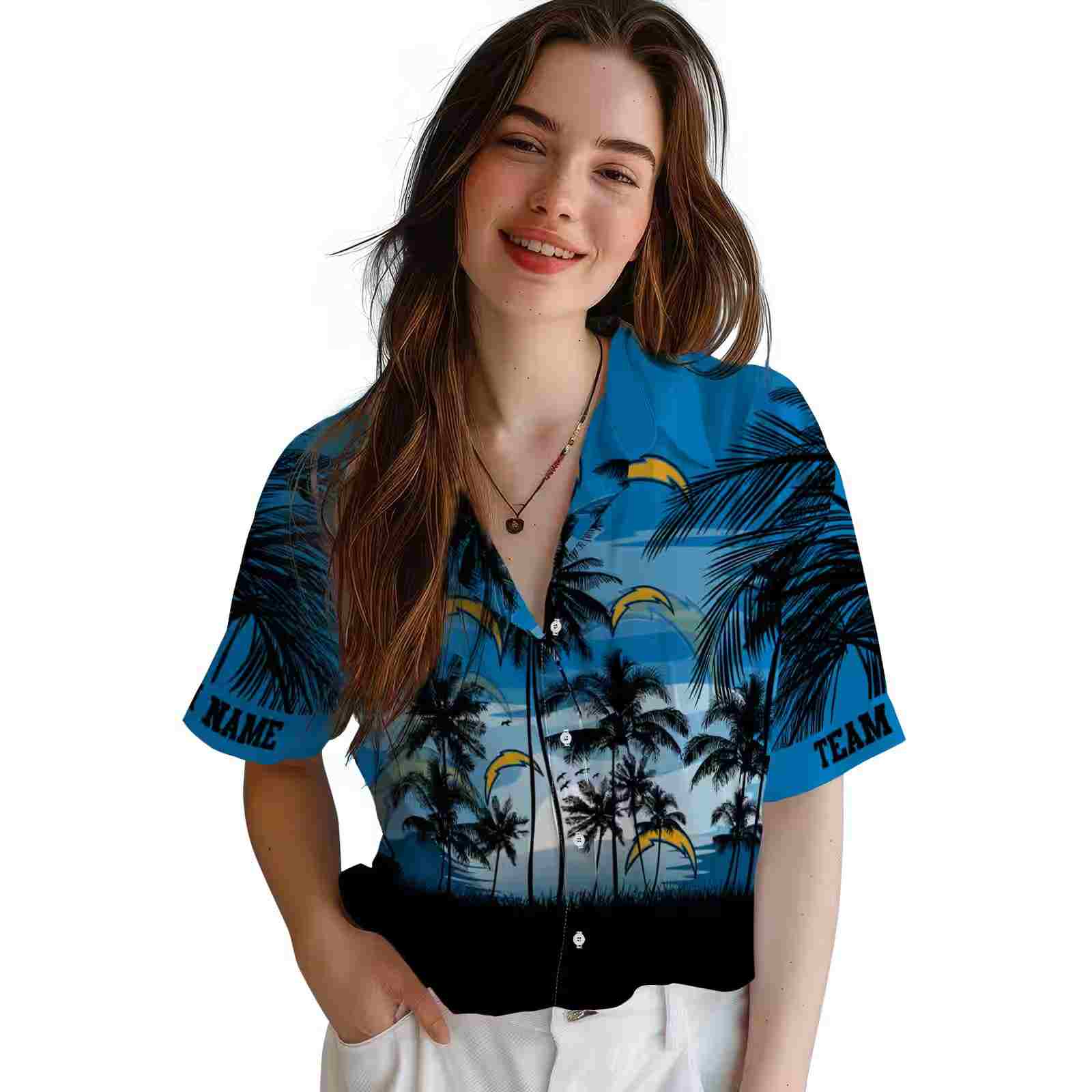Custom Los Angeles Chargers Sunset Scene Blue Black Hawaiian Shirt