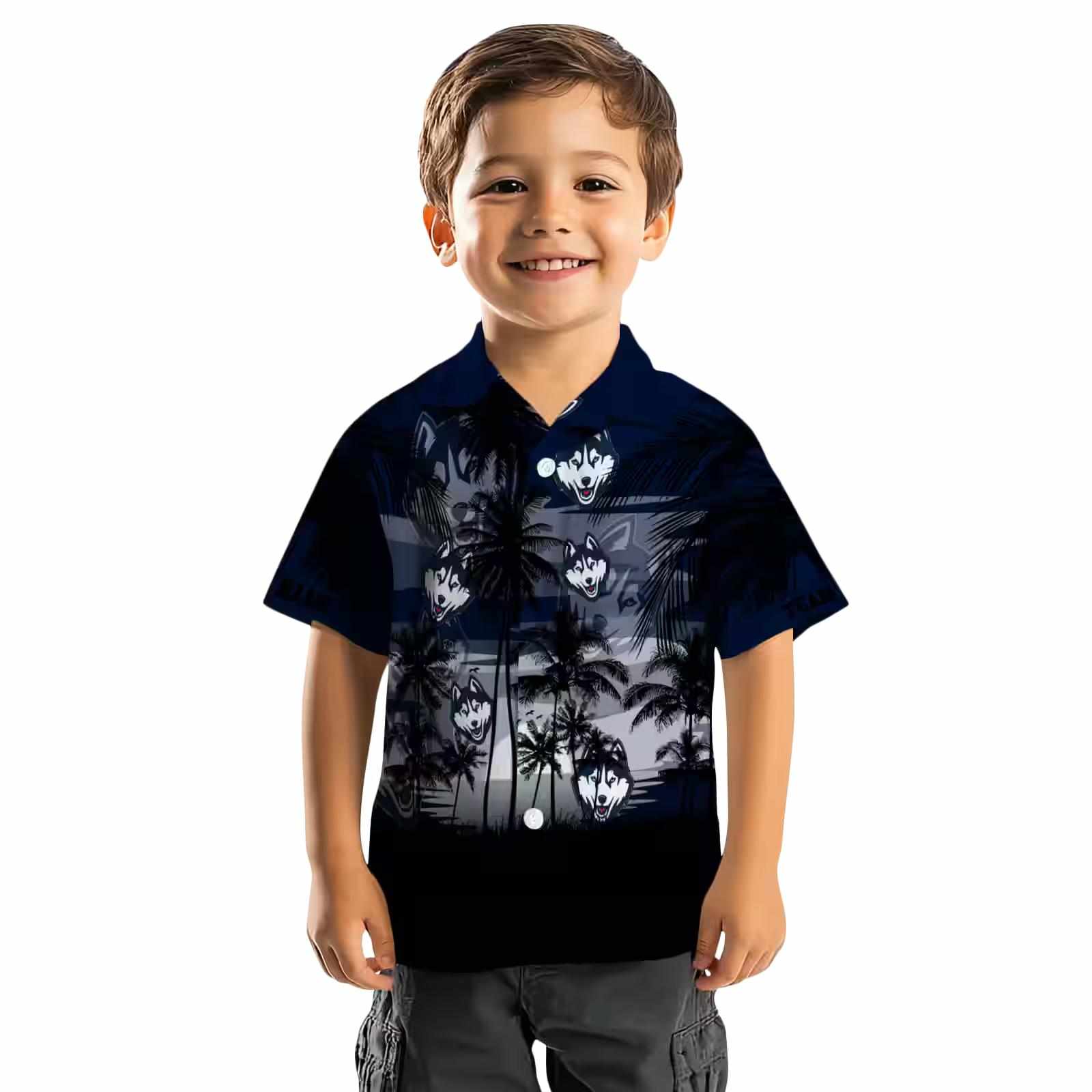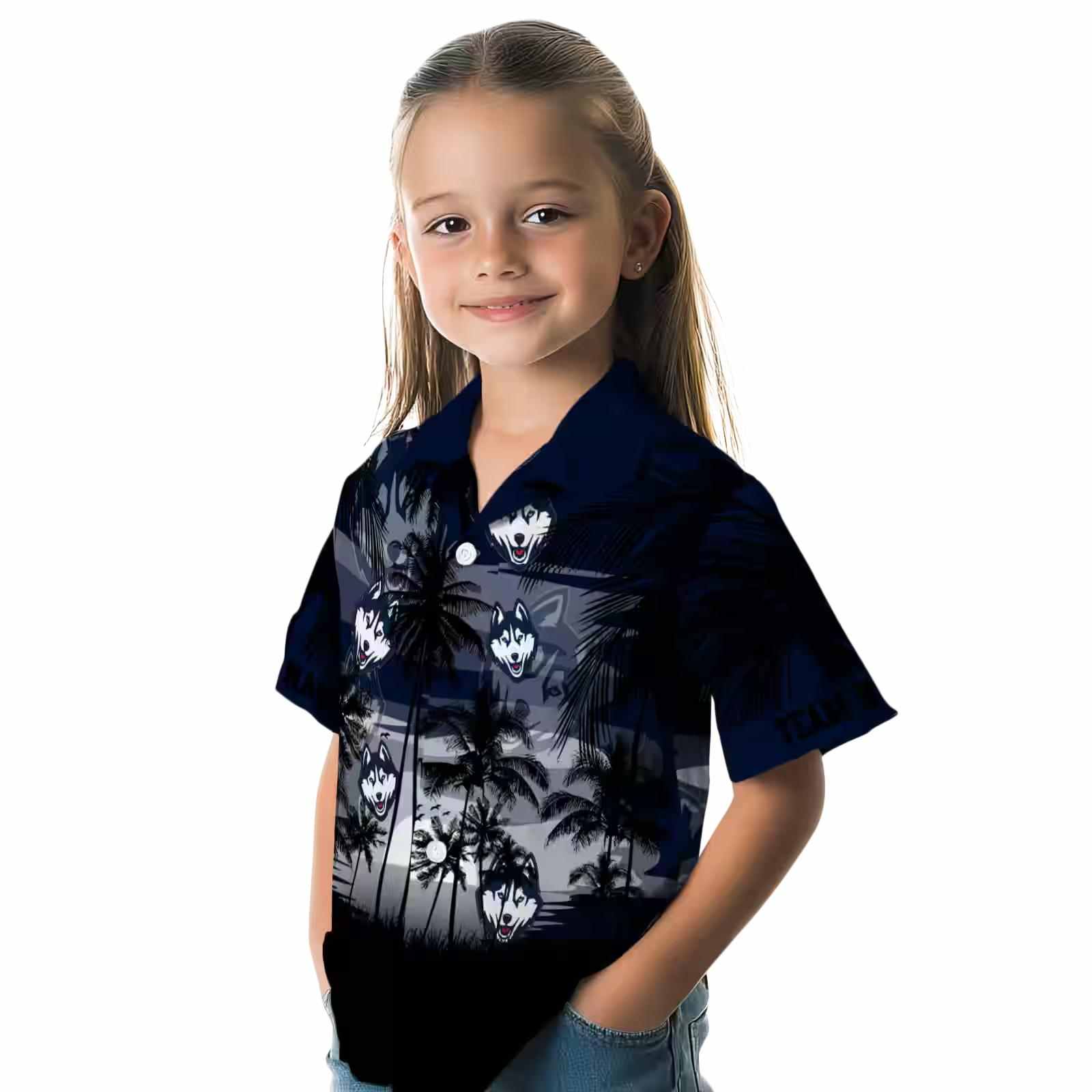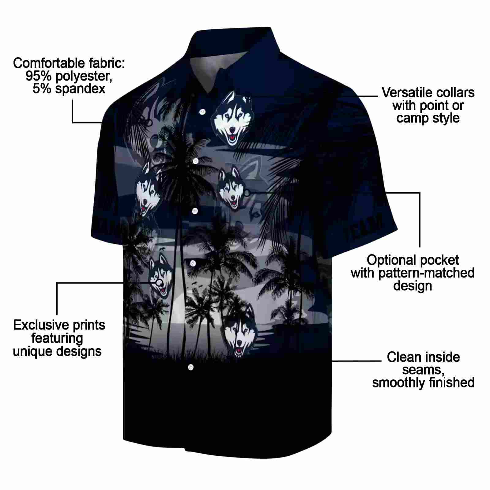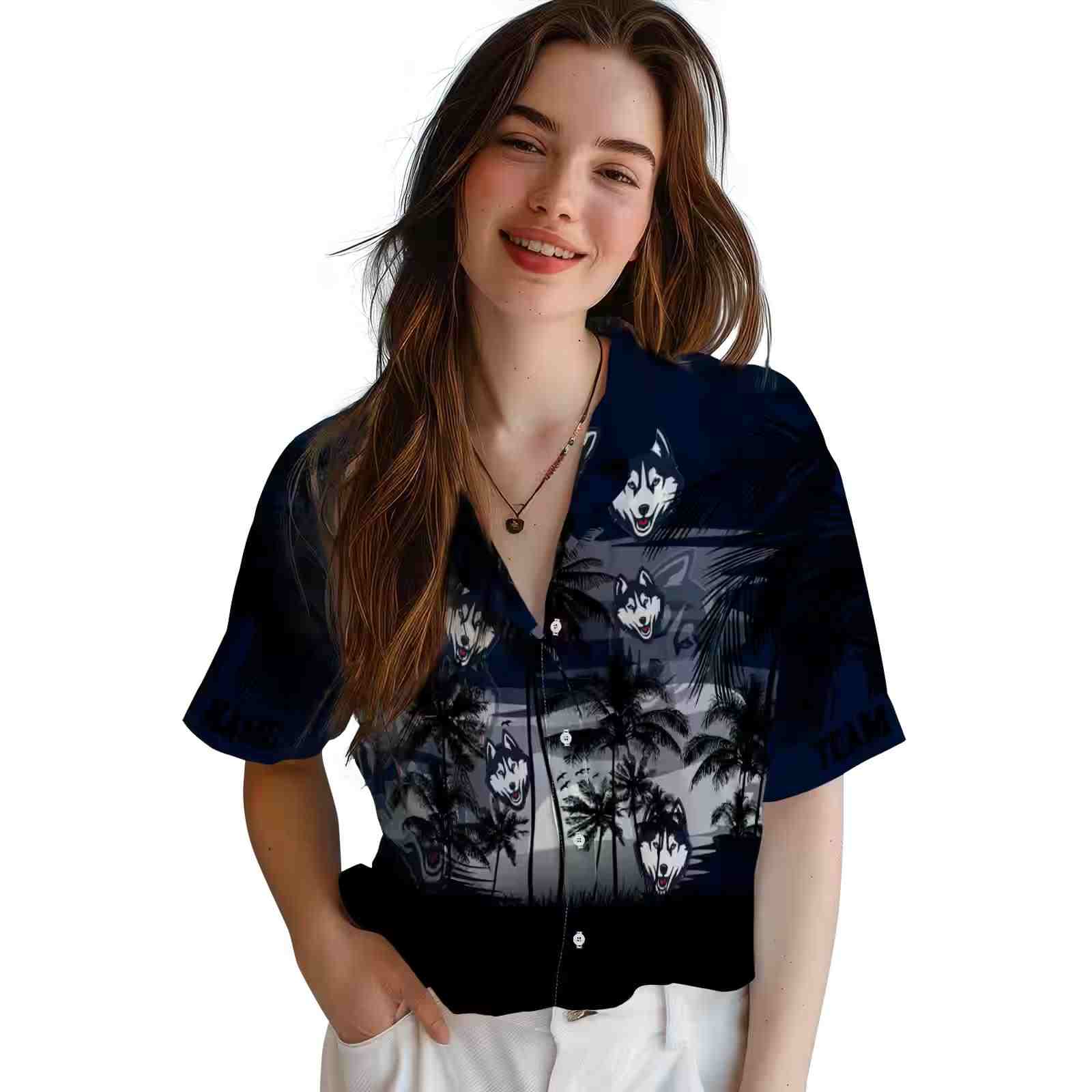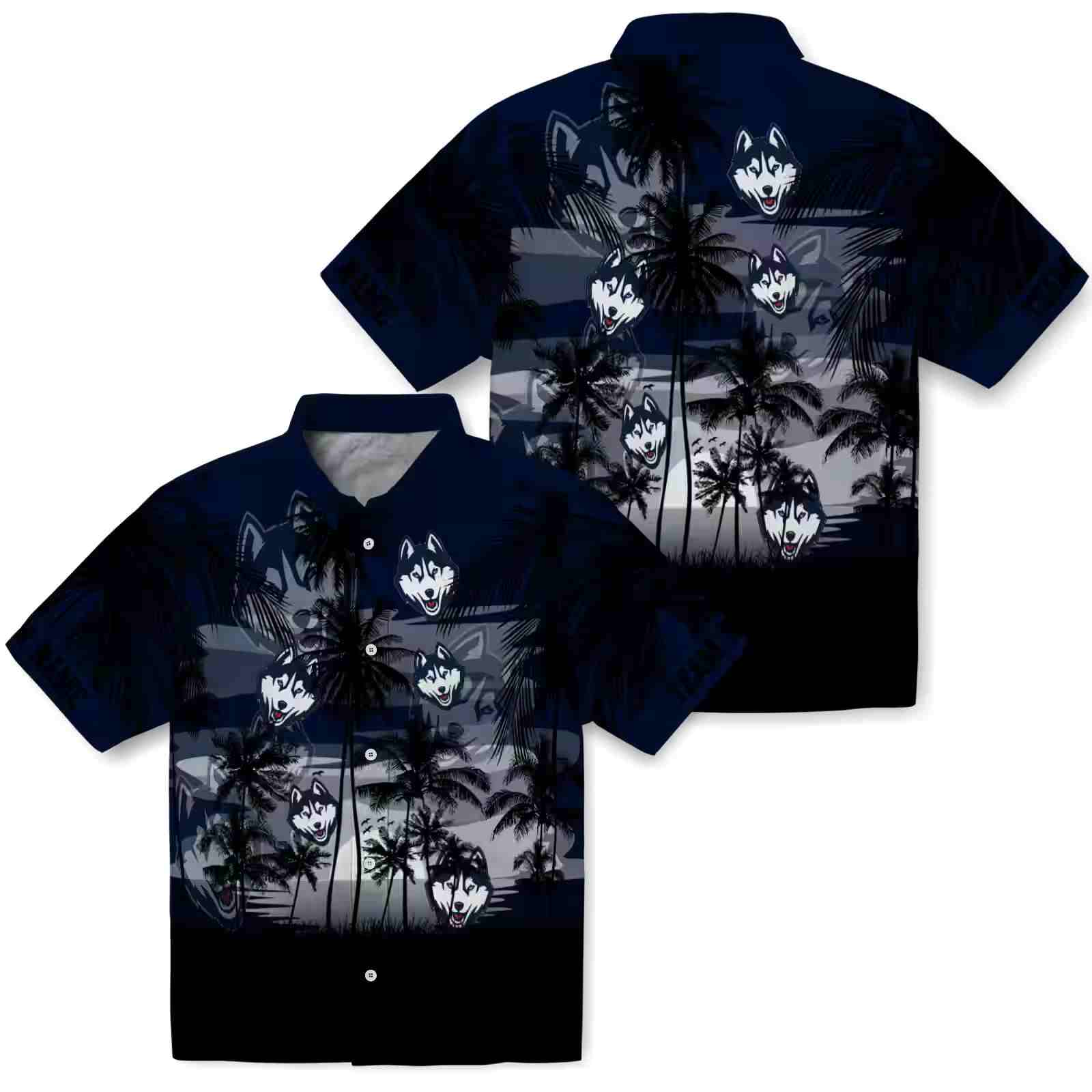 Custom UConn Huskies Sunset Scene Blue Black Hawaiian Shirt