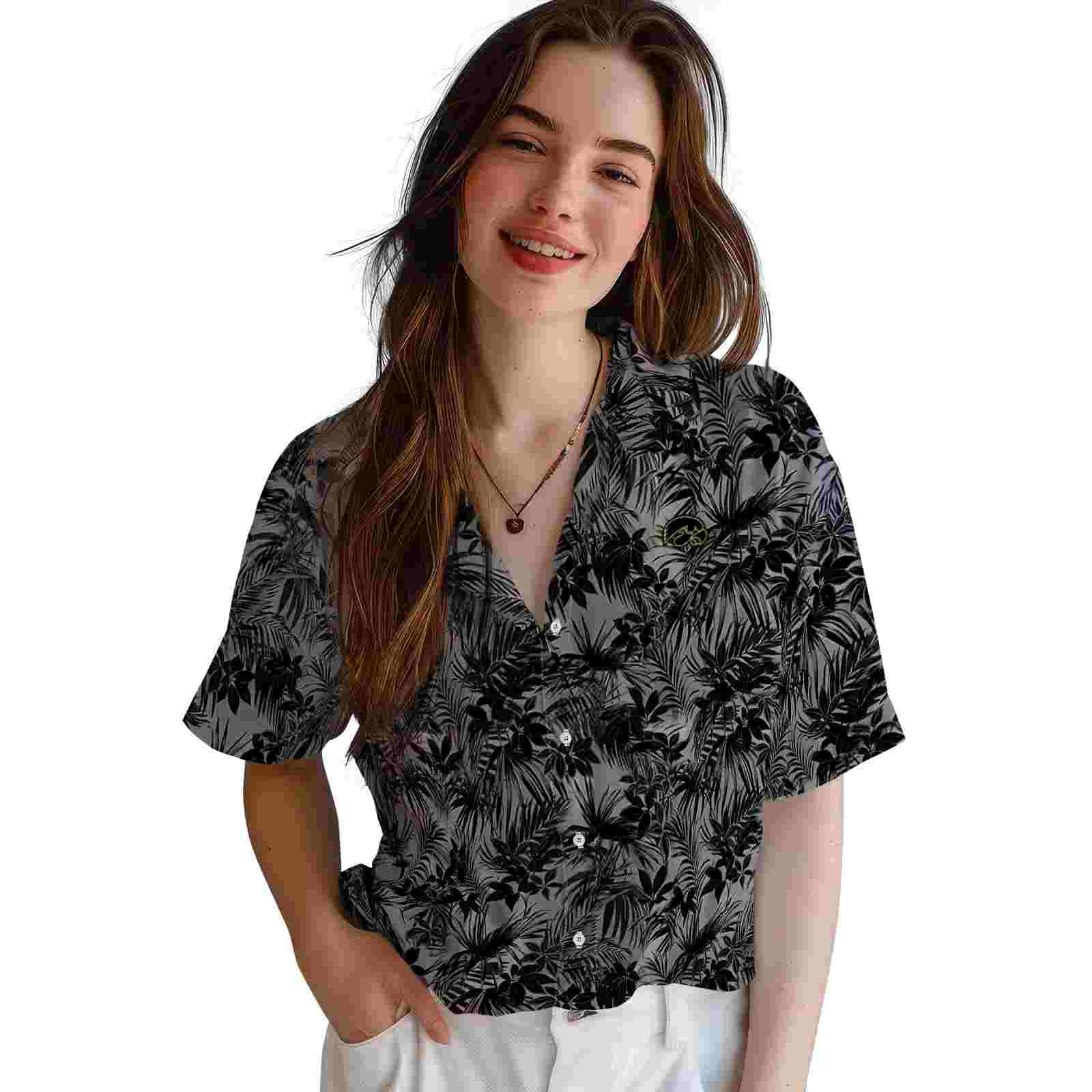Iowa Hawkeyes Leafy Pattern Black Hawaiian Shirt